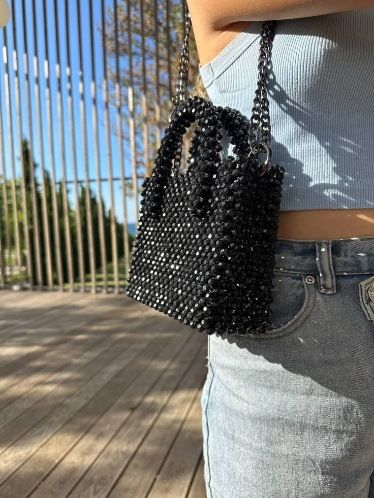 This stunning black crystal bag is designed to make you stand out effortlessly. With its sleek black finish and sparkling crystal detailing, it adds a touch of class and confidence to any outfit. Perfect for parties, dinners, or special occasions